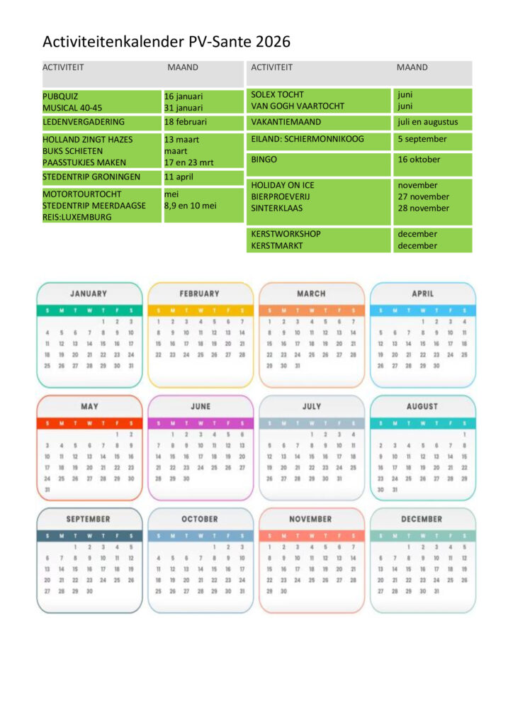 Kalender activiteiten 2026